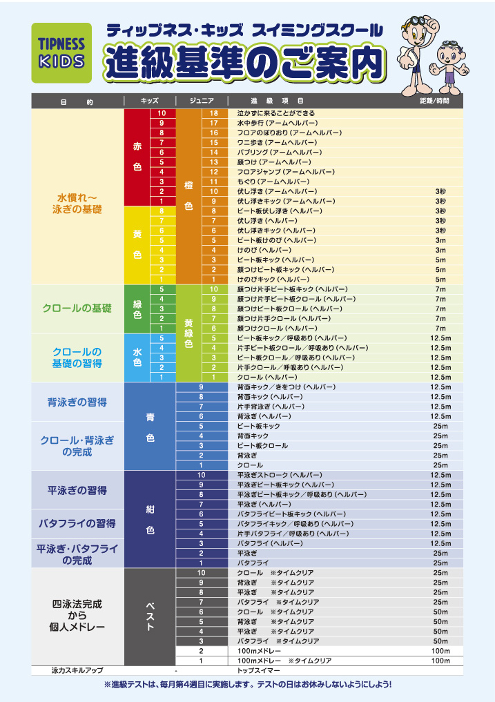 ティップネスキッズのスイミングスクールは58段階の進級ステップで「無理なく」「楽しく」 参加していただけます!